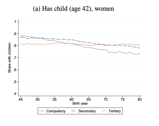 Source: Hanna Virtanen et al., “Education, Gender, and Family Formation,” IZA DP No. 17122, July 2024.