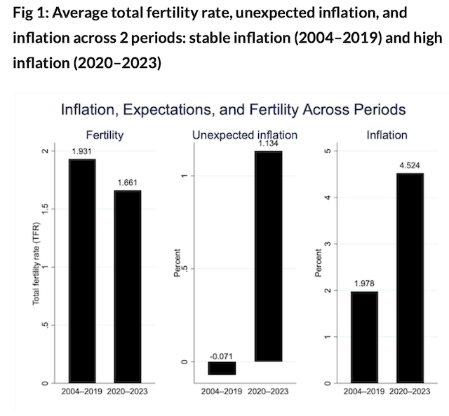 - Our working paper shows that unexpected inflation had a negative, significant impact on the total fertility rate in the U.S. from 2004-2023. Post This