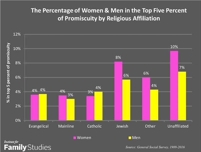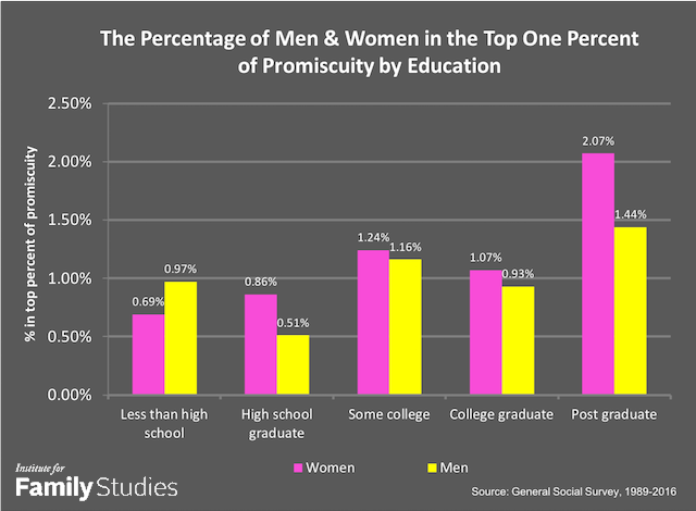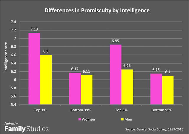 Promiscuous America is urban, secular, and politically progressive, as well as smart and well educated. On average, educated people with high IQs are more likely to get married and stay married. But averages don’t reveal human behavior at the margins, and a narrow sliver of intelligent and highly-educated Americans are departing from sexual norms. The reasons why are among the most intriguing questions raised by this research brief. The answers require in-depth interviews and psychometric data.