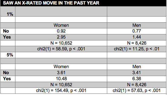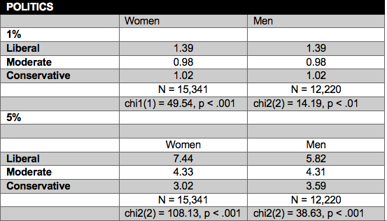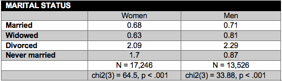 Note: Ns = 15,874 (women) & 12,520 (men). Chi-square tests statistically significant at the .001 level