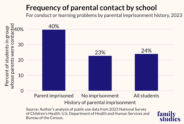School Misbehavior. Compared to students who have not experienced parental incarceration, nearly twice as many American students with histories of parental imprisonment get notes sent home from school because of their misconduct in class or learning difficulties.