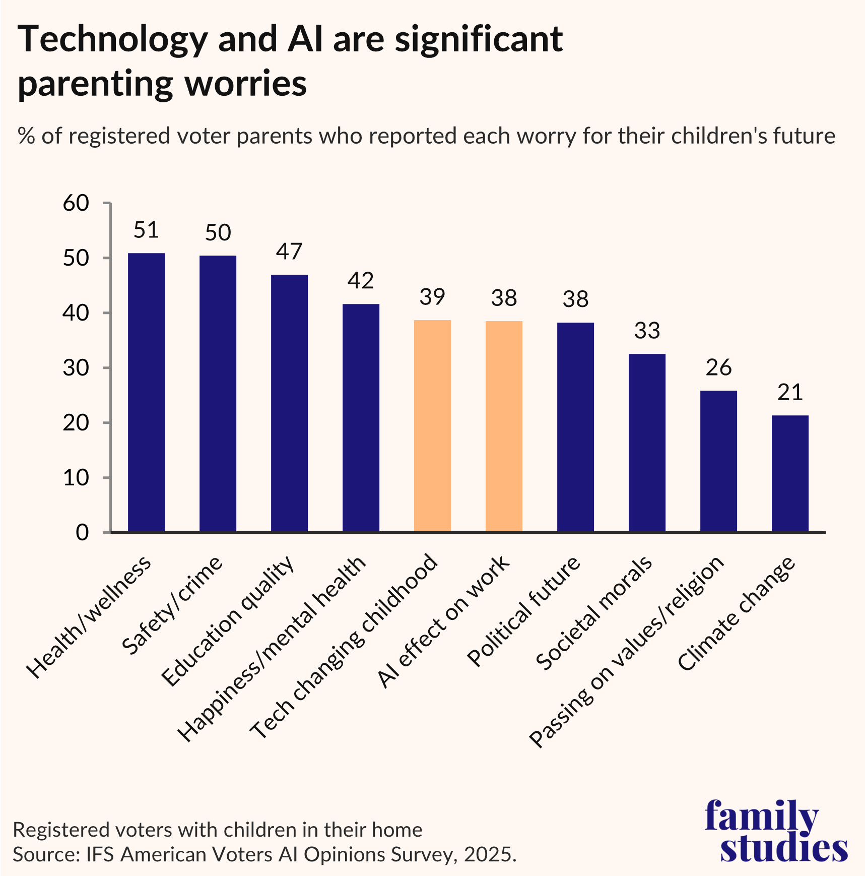 Moreover, what separates AI from all these other issues is its newness. Most parents only became aware of AI with the release of ChatGPT a mere three years ago, or even more recently. In other words, AI has skyrocketed from not even being on the parental radar, to now being a major concern of parents. And unless the trajectory substantially changes, we expect the relationship between AI and families to grow more fractious over time.