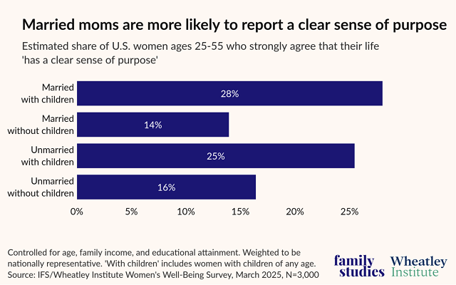 Figure 10. Estimated share of U.S. women ages 25-55 who strongly agree that their life ‘has a clear sense of purpose.’ Source: IFS/Wheatley Institute, Women’s Well-Being Survey, March 2025