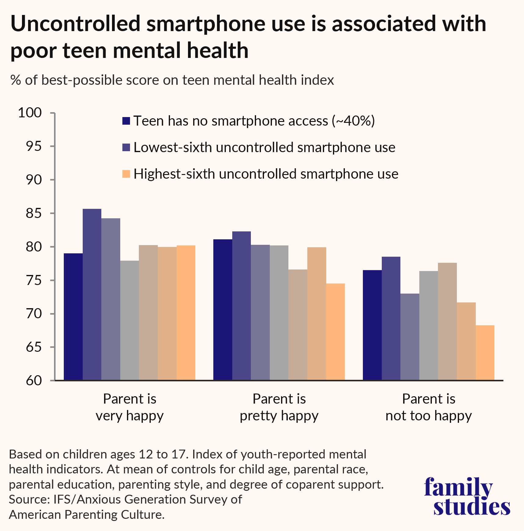 This suggests that uncontrolled smartphone use may exacerbate problems in households that are already struggling, while households with very happy parents may have buffering effects that limit harms.