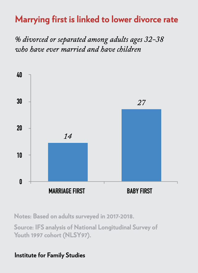 There are many potential ways that marrying before having children favors greater relationship stability compared to when the sequence is reversed. Divorce is one measurable indicator.
